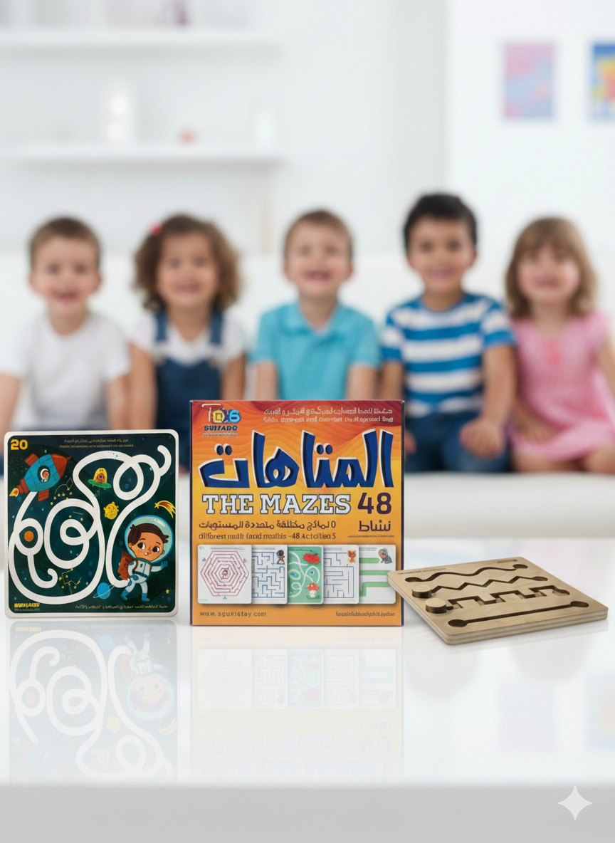 - تتكون الحقيبة من ٢٤ بطاقة كبيرة مقاس ٢٢ سم * ٢٢سم ب ٤٨ نشاط مختلف والبطاقات مغلفة من الوجهين حيث تساعد على استخدام البطاقة عدد لا نهائي من المرات.