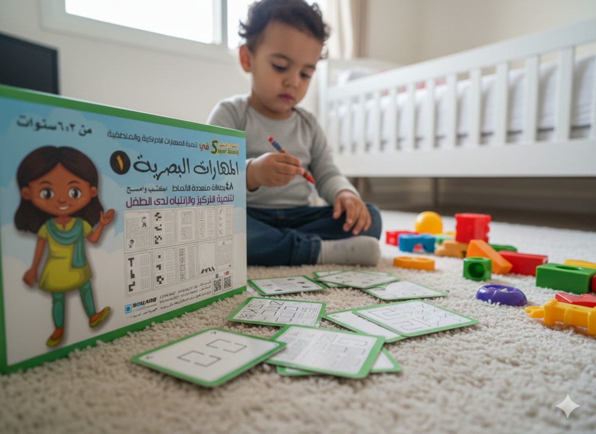 مقاس ١٦*٢٢ سم ورق مقوي مسلفن تنمية المهارات البصرية و التركيز والإنتباه الحقيبة الأولى و يعتمد على تدريب الطفل لمجموعة من الأنشطة الخاصة بالتركيز والإنتباه عدد ٤٨ بطاقة . بطاقات التعليمية من ٣٦ شهراً